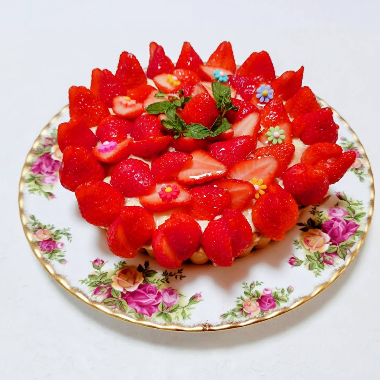 苺たっぷりのタルトケーキを焼きましたよ🎵